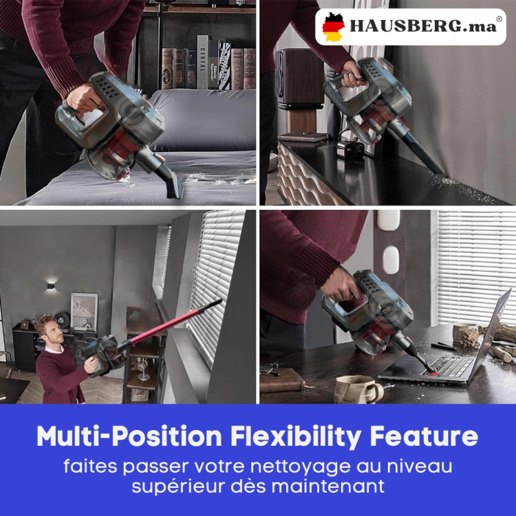 مدل 2028 به صورت دستگاهی دو منظوره (۲-in-1) طراحی شده است؛ به این معنی که میتوانید آن را بهعنوان جارو دستی کوچک برای خودرو یا مبل و همچنین به صورت عصایی برای سطوح بزرگتر استفاده کنید. این طراحی باعث میشود دستگاه کاربری بسیار منعطفتری نسبت به جاروهای شارژی ساده داشته باشد.