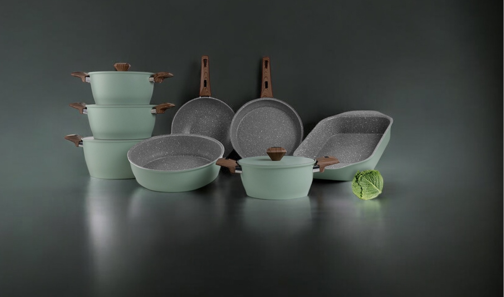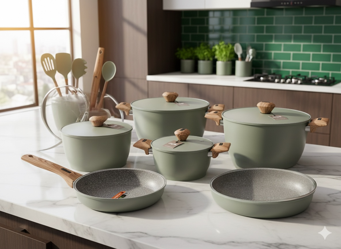 سرویس قابلمه ۱۰ پارچه سرامیکی Gigilli مدل Volcano رنگ Mint | نچسب و حرفه‌ای