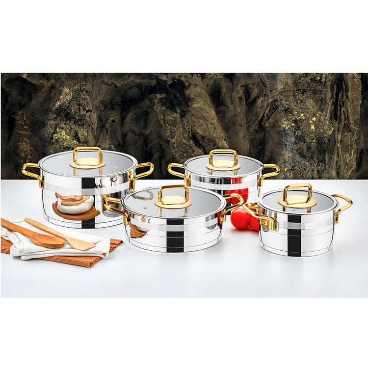 قابلمه استیل اویم سارای مدل 1373 با دستههای طلایی – کف سوپر کپسول پنجلایه آلمانی و روکش نچسب