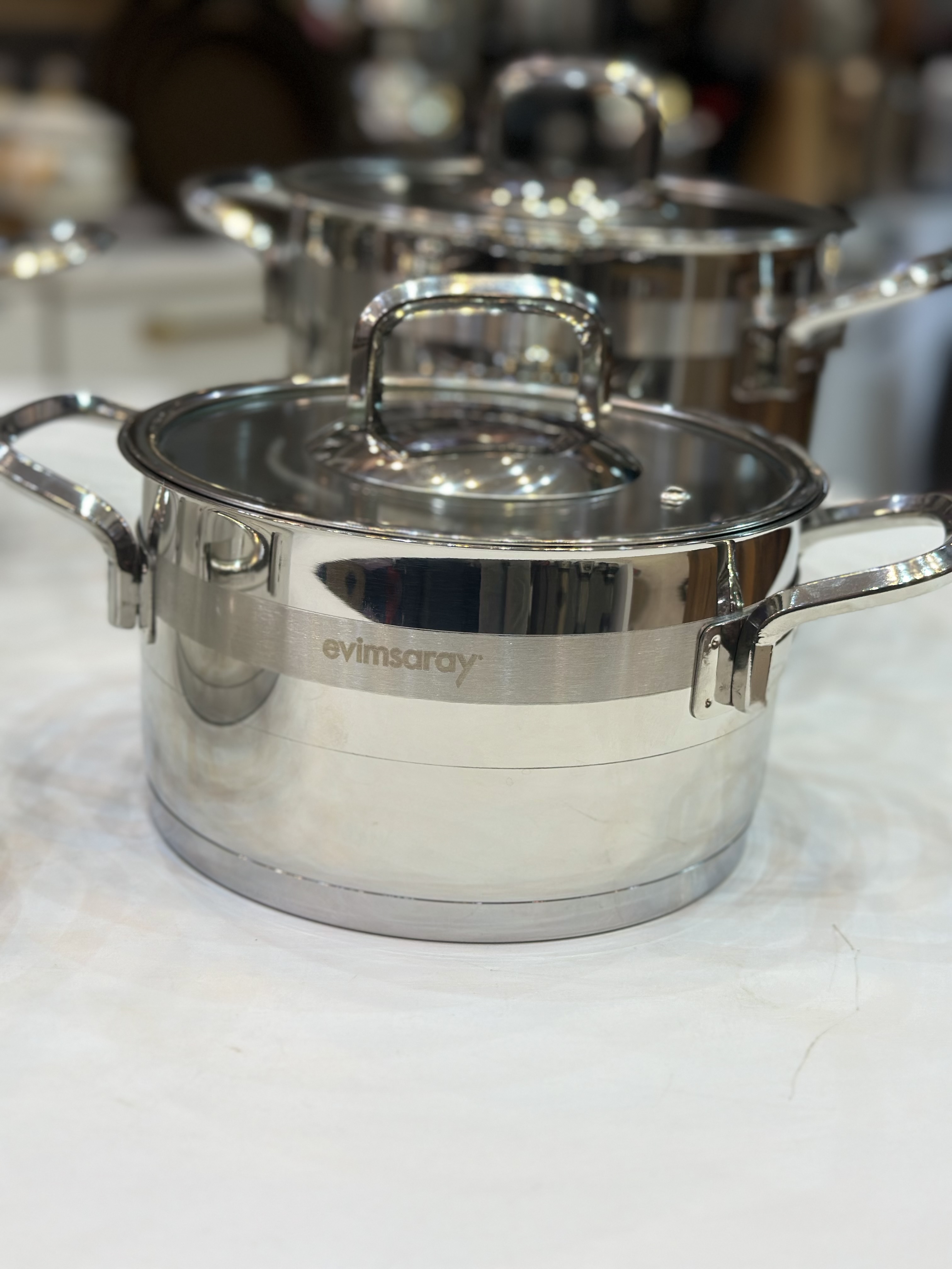 سرویس قابلمه استیل ۸پارچه اویم سارا ۱۳۴۶ مدل سفیر /دسته استیل